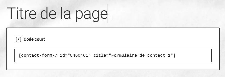 Créez une nouvelle page ou éditez une page existante, puis collez dedans le Shortcode du formulaire. Exemple :