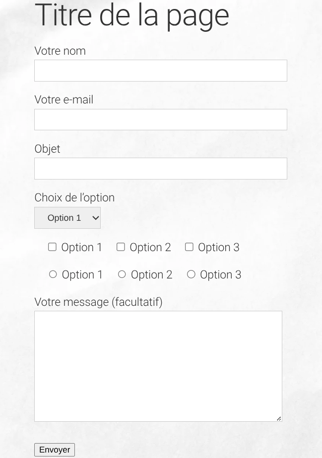 Affichez la page : le formulaire est présent. Un visiteur peut maintenant le remplir pour vous envoyer ses informations.
