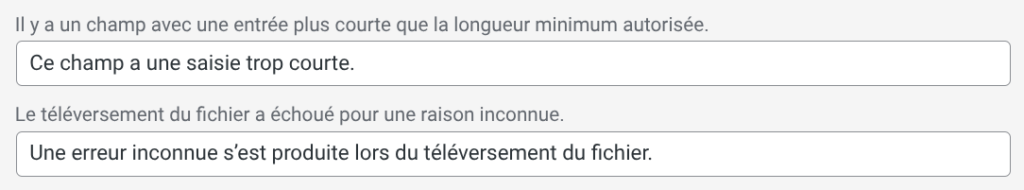 Si le travail des traducteurs est très soigné, lorsqu’une formulation ne vous semble pas adaptée à votre formulaire, ou qu’elle sonne étrangement à vos oreilles, n’hésitez pas à l’éditer…