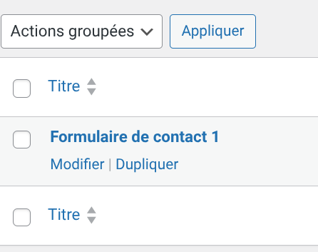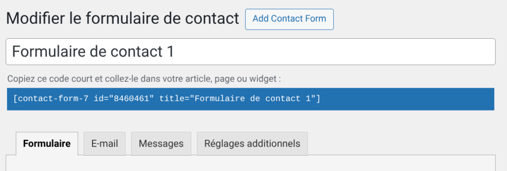 Rendez-vous dans l’onglet Formulaire de Contact Form 7 pour l’éditer.