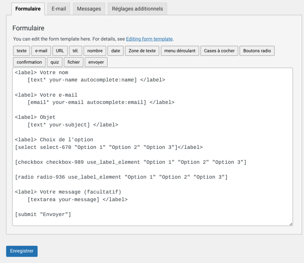 Contact Form 7 – édition du formulaire